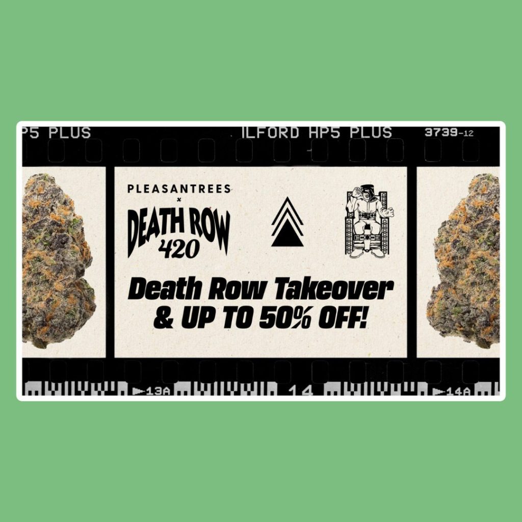 Pleasantrees is stretching 420 into a week-long event, with discounts climbing daily from April 13-20 and topping out at up to 50% off by the holiday. The whole thing is anchored by a Death Row Cannabis takeover, plus limited-edition merch for anyone who gets there before it’s gone.