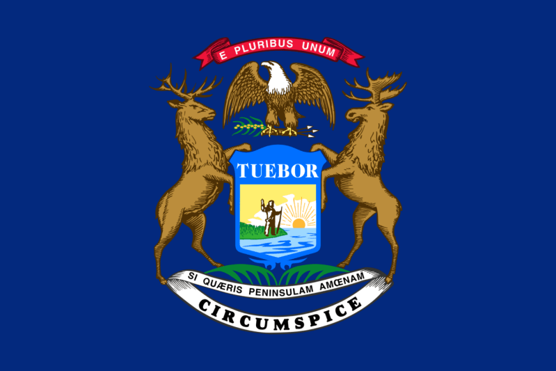 Michigan’s current state flag, adopted in 1911. (Source: Public Domain)