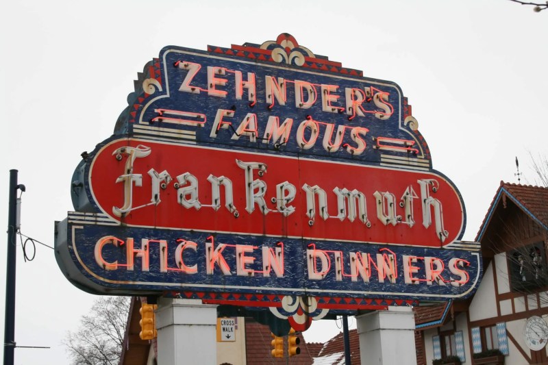 The Little Bavaria of Frankenmuth is perhaps best known as Michigan’s Christmas wonderland, but its culinary and historical heritage carry stronger German roots. One piece of its German heritage is the famous Frankenmuth family-style chicken dinners, which are traditionally served as a whole parboiled chicken, cut into 10 pieces, and fried with a light breading. In traditional German cuisine style, the chicken is served with mashed potatoes, buttered noodles, vegetables, and cranberry relish.