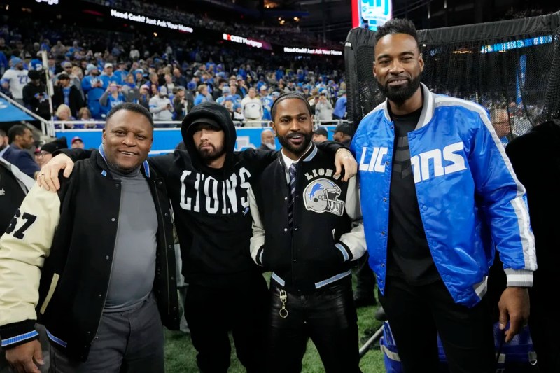 DETROIT—Eminem stood alongside Pro Football Hall of Famers Barry Sanders and Calvin Johnson before the Detroit Lions hosted a playoff game for the first time in three decades, soaking up an electric atmosphere at Ford Field.