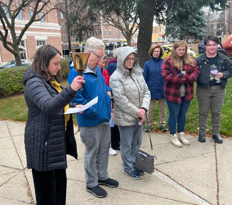 Xan Morgan, director of community life at First Baptist Church of Ann Arbor, also helped to lead the vigil by ringing a bell as the names were read out for each of the 26 trans individuals who have died by violence so far in 2023.