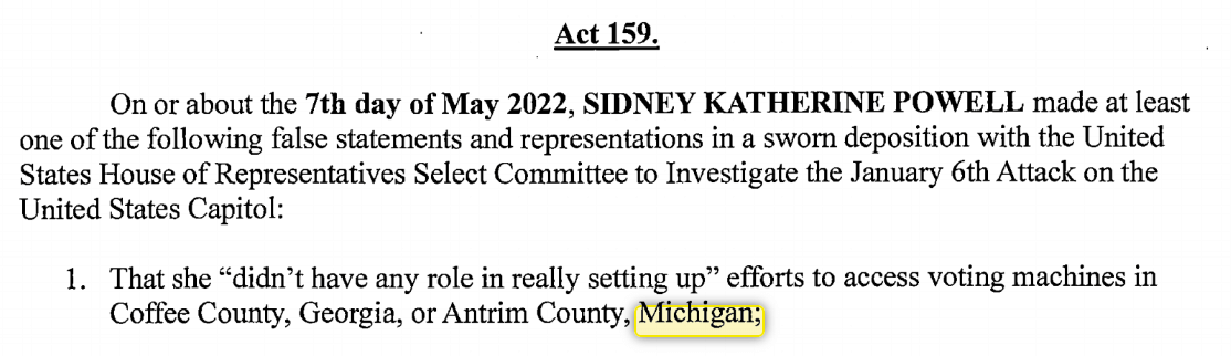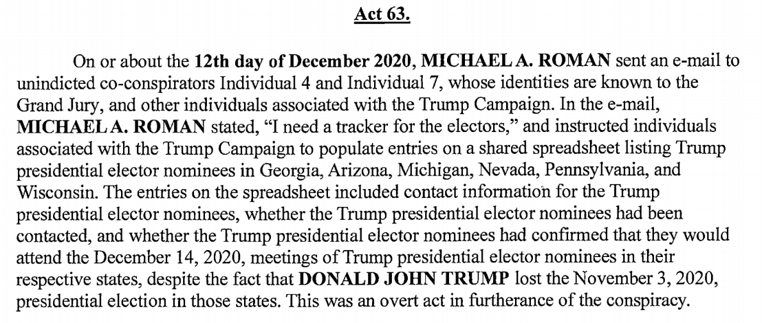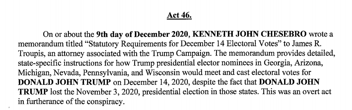 One week later, an attorney with the Trump campaign allegedly received a detailed memorandum (and state-specific instructions) from one defendant on how to swap out real presidential electors for alternate slates of fake electors—including in Michigan. The indictment painted this memorandum as part of Trump’s broader gameplan to subvert the will of the voters.