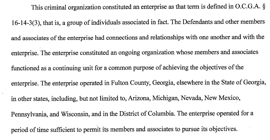 The Georgia case covers much of the same ground as Trump’s recent indictment in Washington D.C., including attempts he and his allies made to disrupt the electoral vote count at the US Capitol. Specifically, it alleges that Trump and his allies “knowingly and willfully joined a conspiracy to unlawfully change the outcome of the election”—including a “common plan and purpose to commit two or more acts of racketeering” in Georgia, as well in several other states.