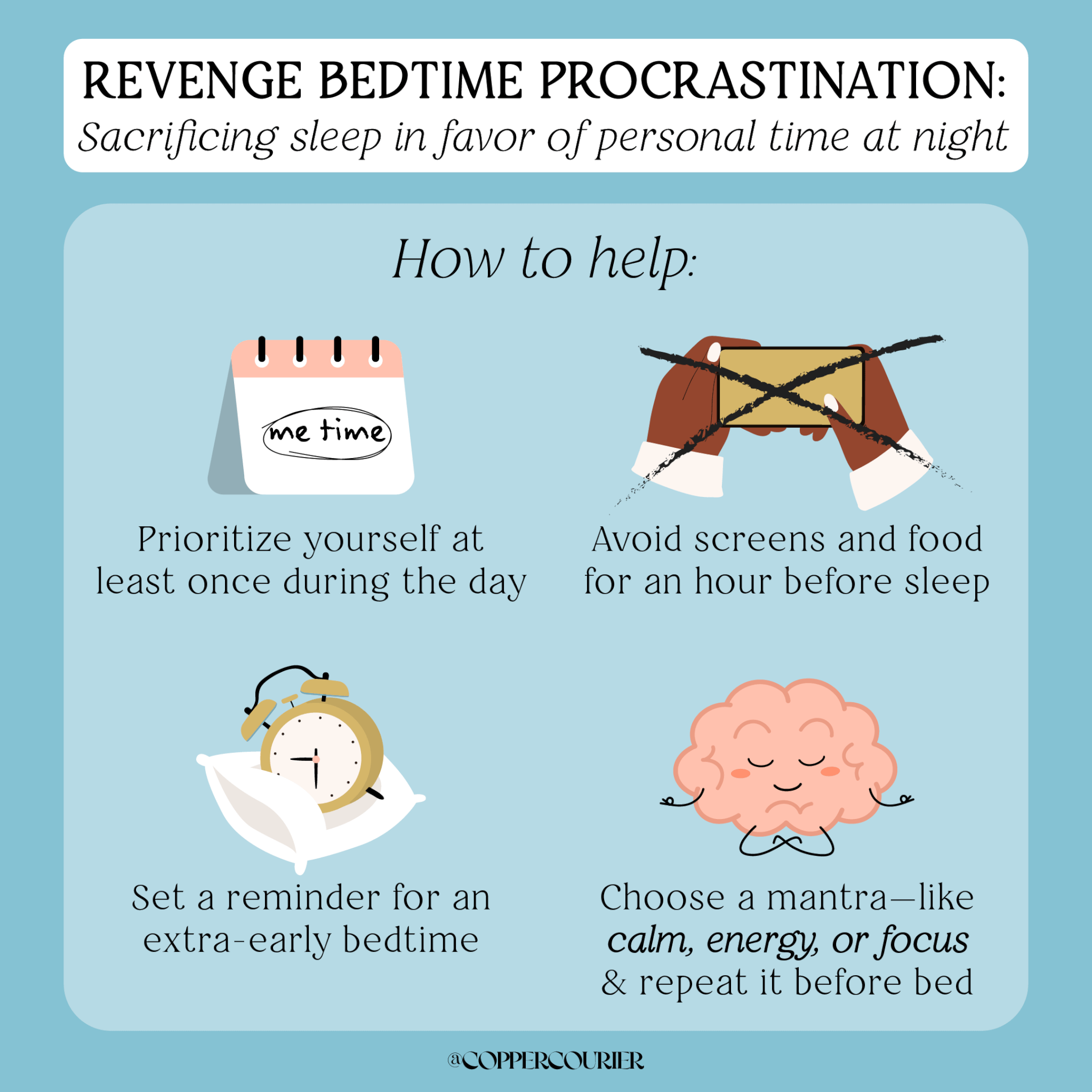 Did you know that women are more likely to experience revenge bedtime procrastination? That’s because they often carry the emotional workload for their families—not to mention their work-workload, most of the household chores, and a heap of societal expectations. Bedtime procrastination becomes a way of getting “revenge” on daytime hours that offer little or no free time.