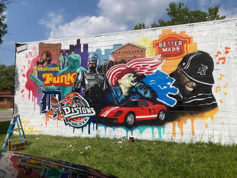 Lee has painted numerous public murals throughout Detroit. He’s also been commissioned by businesses, organizations, and the general public to work on projects.