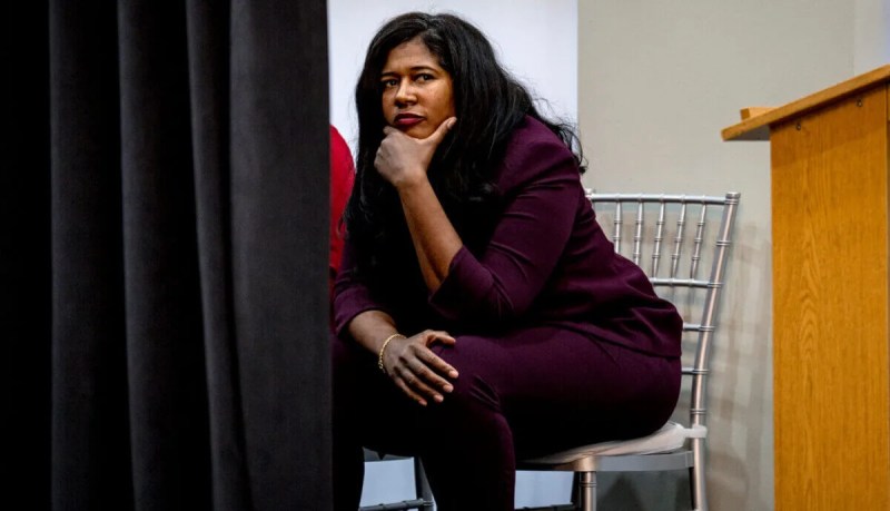 Kristina Karamo looks on during the Unite America rally at Fairlane Banquet Center in Dearborn on October 30, 2022. (Photo by Nic Antaya for The Washington Post via Getty Images)