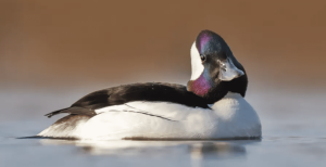 Named after their odd, puffy, round-shaped “buffalo heads,” the bufflehead can be found swimming in pairs or small groups on lakes, slow-moving rivers, and ponds around Michigan. These small but mighty ducks will dive underwater—sometimes simultaneously—to feast on aquatic insects, mollusks, and plant material.