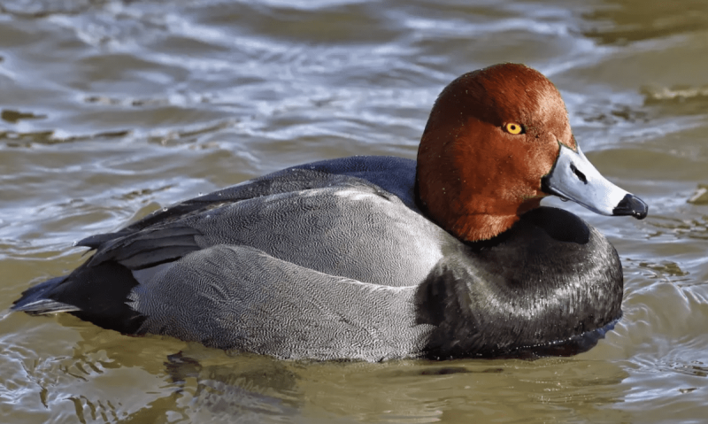 Male redheads can be spotted by their cinnamon-brown colored heads. Redheads like to deep dive into a body of water to eat aquatic plants and insects.