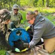 Michigan wildlife experts finally were able to trap a black bear and remove a large lid that was stuck around his neck — for two years.