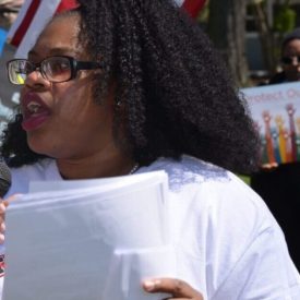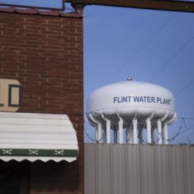 Dozens march to Flint city hall as the water crisis turns 10 years old