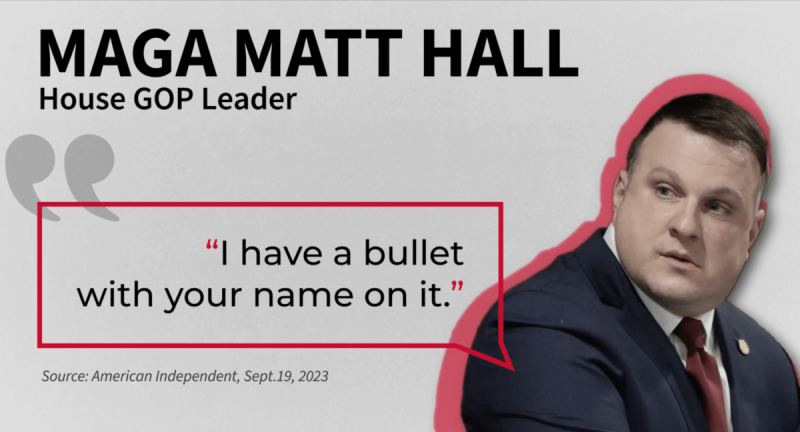 Michigan House Minority Leader Matt Hall opposes legislation that would prevent abusers from owning guns. During his time as a college student, he reportedly threatened to shoot another student with a shotgun.