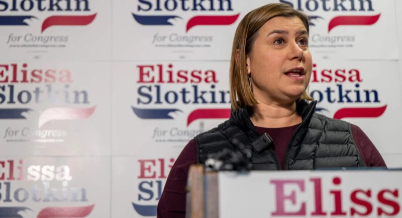 US Rep. Elissa Slotkin (D-MI) speaks to reporters at a press conference on November 09, 2022 in East Lansing, Michigan. (Photo by Brandon Bell/Getty Images)