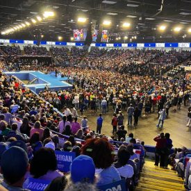 Thousands of Michiganders packed inside Dort Financial Center in Flint to rally in support of Vice President Kamala Harris during her fourth campaign stop in Michigan.