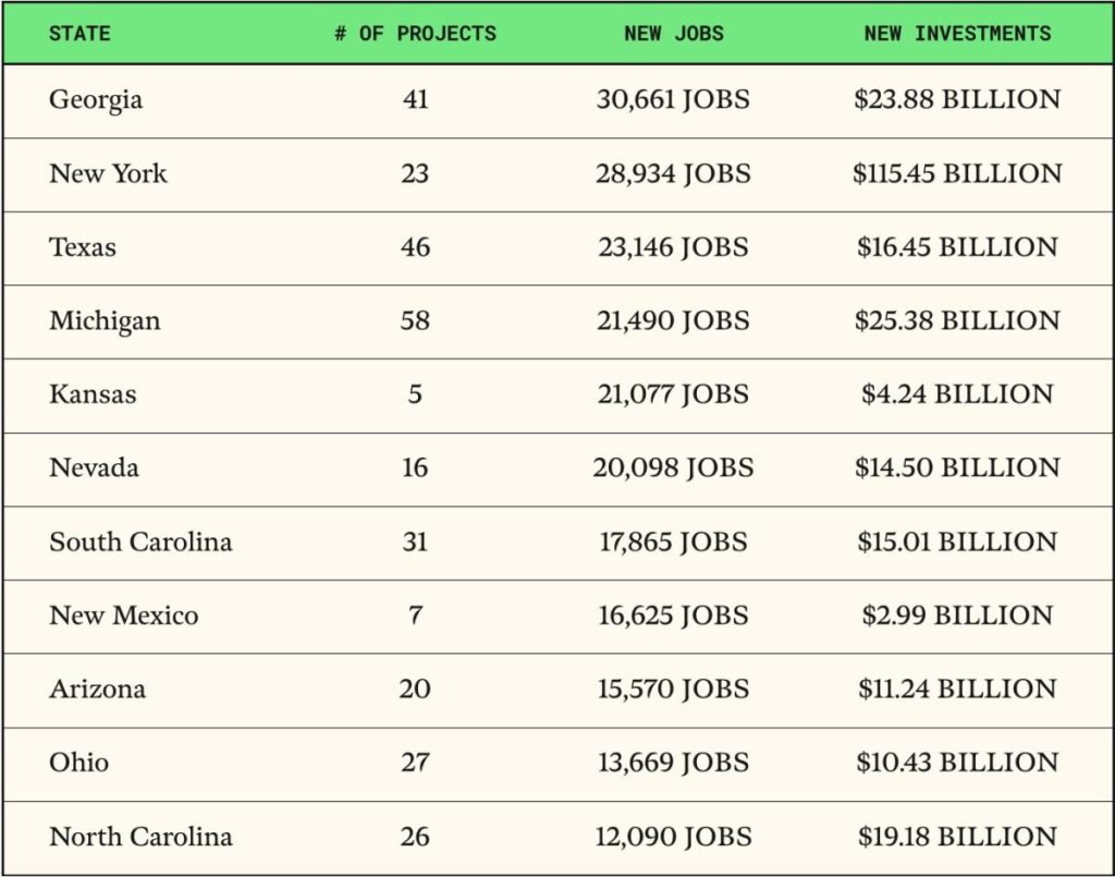 According to the new report, those new clean energy projects in Michigan have spurred at least $25.4 billion in investment and created or moved forward at least 21,490 new clean energy jobs—which Climate Power says is part of a “clean energy boom” now unfolding nationwide.
