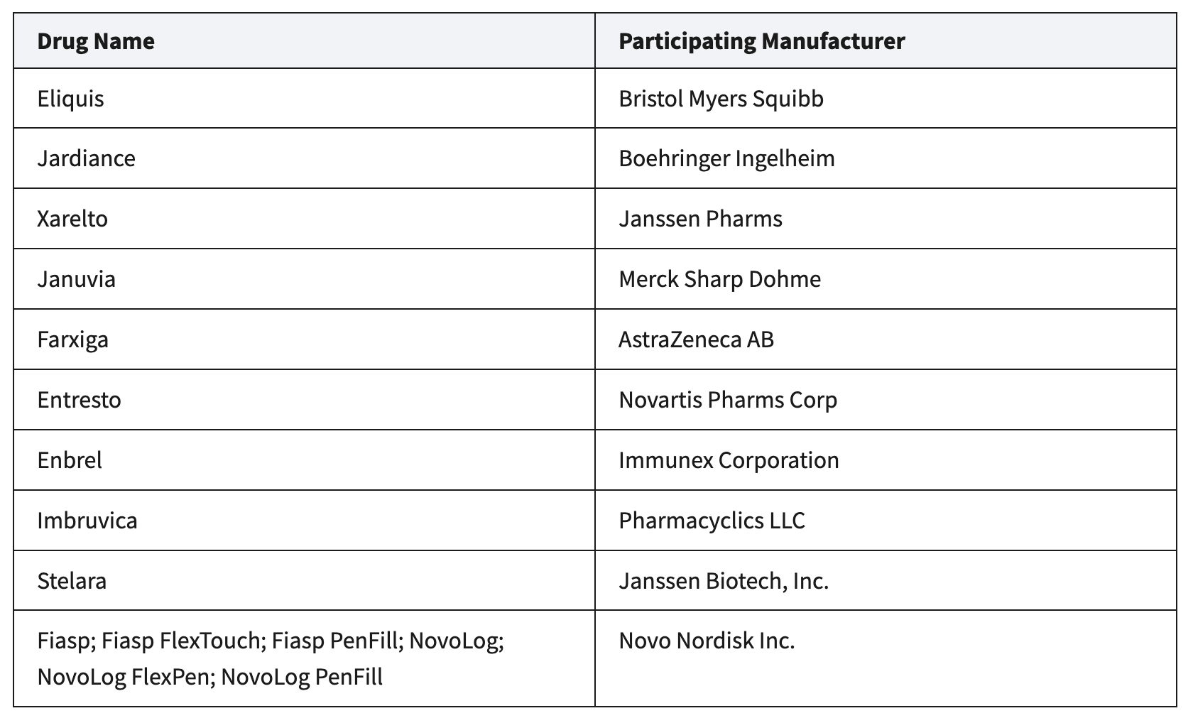 The drugs include the blood thinners Eliquis and Xarelto, as well as the diabetes drugs Jardiance, Januvia, and Farxiga.