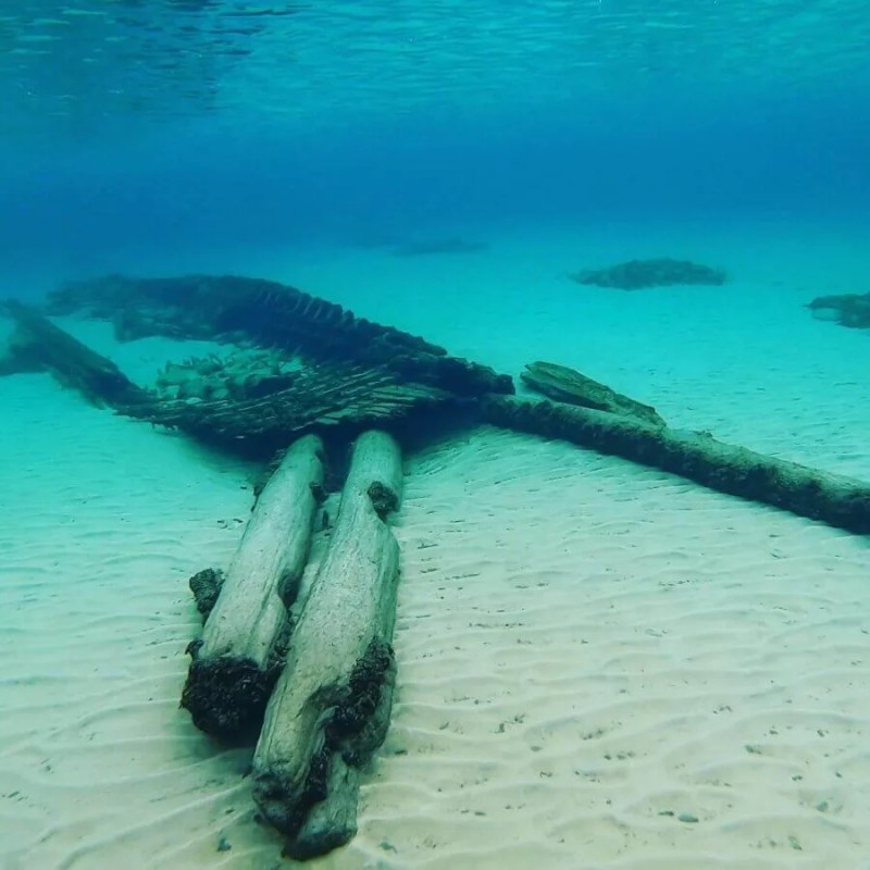 Parts of the ship are still there today, along with lumber from the old dock, six feet below the surface.