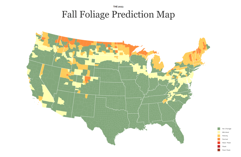 Curious to know when to plan the perfect fall color trip or when you’ll see peak fall colors in your area? This fall foliage prediction map can help.