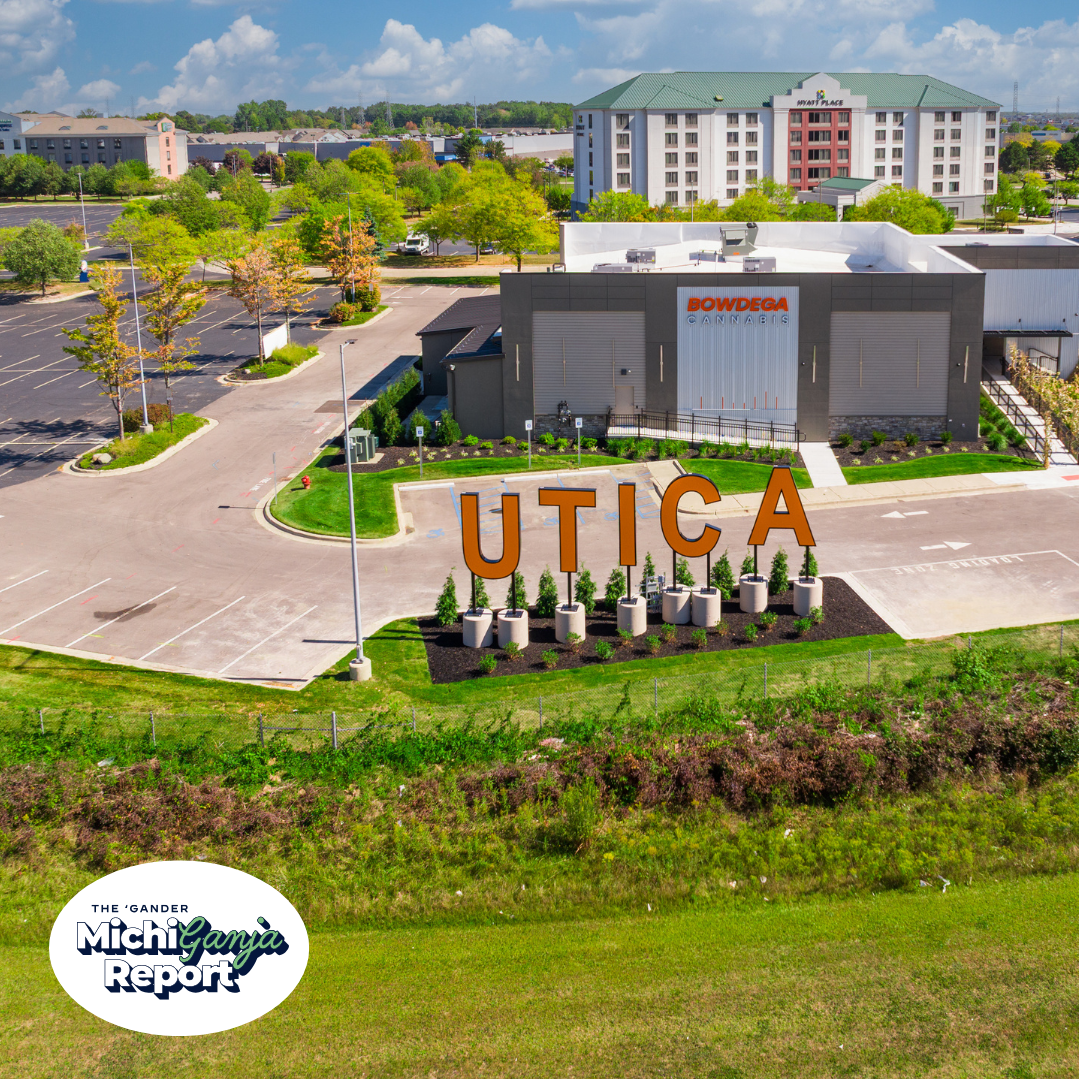 Each letter is painted a punchy, traffic-stopping orange, and the whole thing lights up at night, giving Utica its own sort of moment in the spotlight, kind of like Detroit’s giant roadside sign that made headlines not too long ago. It’s bold. It’s fun. And honestly, it fits the vibe of a dispensary and consumption lounge that’s trying to bill itself as the hangout base camp for local stoners.
